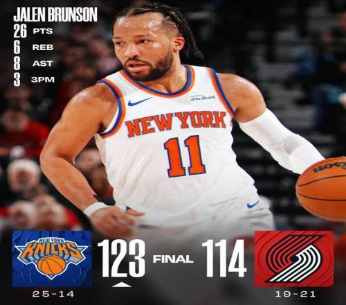楊瀚森未出場 尼克斯終結(jié)開拓者5連勝
