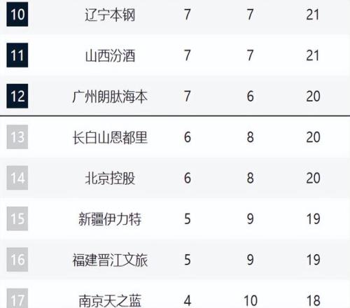18-20分別是天津、江蘇和四川。天津最近10場拿下了三場,他們正在擺脫困境。