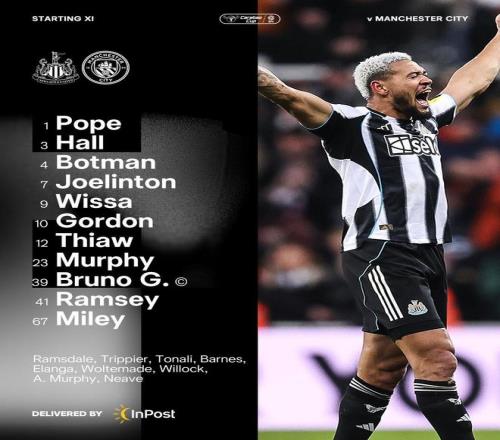 紐卡斯?fàn)柭?lián)首發(fā):1-波普、3-劉易斯-霍爾、12-馬利克-佳夫、4-博特曼、67-劉易斯-米利、39-吉馬良斯、41-雅各布-拉姆齊、7-喬林頓、9-維薩、23-雅各布-墨菲、10-安東尼-戈登