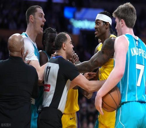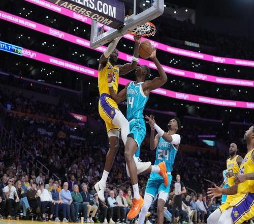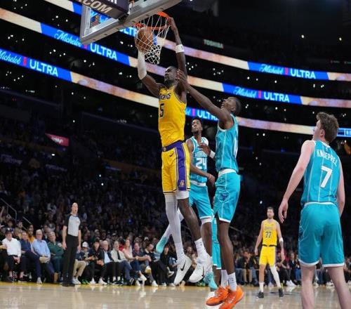 末節(jié)初段,拉拉維亞連續(xù)得分,黃蜂罰球,米勒中投。湖人搶斷老詹反擊上籃追到只差6分,黃蜂暫停。暫停以后,湖人的防守是真一點沒有,黃蜂隨便進,分差再度被拉開將近20分。東契奇和詹姆斯兩人不斷追分,老詹快攻2+1,中投再進追到10分。但三球兩記三分徹底殺死比賽。