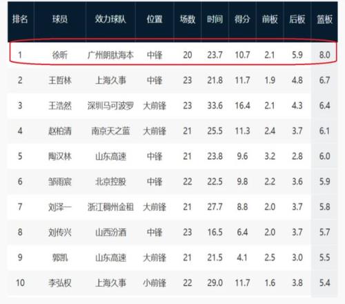 如今的徐昕,在廣州隊已經(jīng)坐穩(wěn)了第一中鋒的位置,幾乎每一場比賽打首發(fā),場均可以交出10.7分8籃板2.1蓋帽的全面數(shù)據(jù)。其中,場均2.1蓋帽,排在CBA第一位。場均8個籃板,排在CBA本土球員第一。