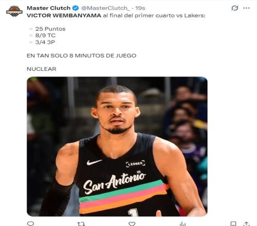 北京時間2月11日,湖人輪休多人,馬刺這邊則是全主力出戰(zhàn),維克托-文班亞馬在首節(jié)7分59秒里拿到25分,這場比賽成為文班亞馬表演賽。(科比曾在湖人主場拿到81分)