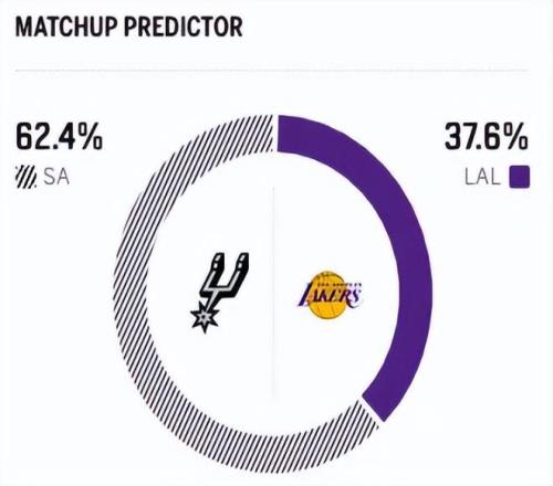 賽前,美媒ESPN對(duì)本場(chǎng)比賽進(jìn)行了勝率預(yù)測(cè),湖人隊(duì)勝率僅有37.3% ,馬刺勝率則高達(dá)62.7% ,差距非常明顯。