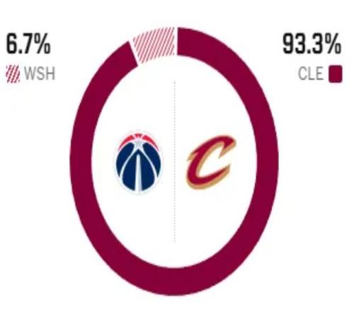 賽前,美媒ESPN對本場比賽進行了預測,奇才勝率僅有可憐的6.7%,騎士勝率高達93.3% ,斷崖式領先。