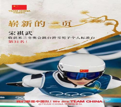 米蘭冬奧會(huì)跳臺(tái)滑雪男子個(gè)人標(biāo)準(zhǔn)臺(tái),宋祺武以?xún)商偡?37.2的成績(jī)獲得第31名,刷新中國(guó)體育代表團(tuán)冬奧會(huì)該項(xiàng)目的最好成績(jī)。同時(shí),在花樣滑冰、雪橇、單板滑雪等項(xiàng)目中,中國(guó)選手均全力以赴,展現(xiàn)良好競(jìng)技狀態(tài)。