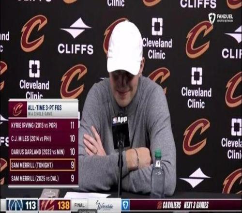 9個(gè)3分追平個(gè)人新高,也是騎士隊(duì)史單場(chǎng)第4高三分命中紀(jì)錄,僅次于歐文(11記)、CJ·邁爾斯和加蘭(10記)。