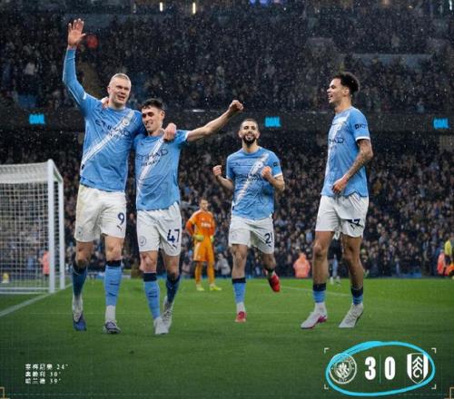英超第26輪曼城坐鎮(zhèn)主場以3-0橫掃富勒姆,將與榜首阿森納的分差縮小至3分,隨后槍手爆冷失分,曼城就有可能取而代之。此役,上半場塞梅尼奧傳射建功,奧賴利、哈蘭德先后破門,藍月亮早早鎖定勝局。下半場富勒姆雖竭力反撲卻難破曼城防御的銅墻鐵壁,最終瓜帥的球隊贏球的同時將兩項英超歷史紀錄收入囊中。