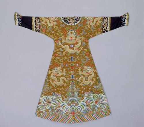 △中國(guó)目前大部分緙 絲作品都存在故宮博物院里,圖為故宮博物院收藏的香色緙絲金龍夾龍袍