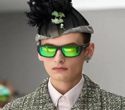 △Dior 2024春夏男裝,模特戴的帽子上別著的就是絨花