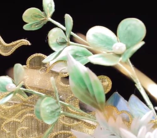 ”絨花“這個(gè)詞,很形象地描述出了這種技藝的特點(diǎn):它用 天然蠶絲和銅絲等作為原材料,擬成花朵的造型 , 同時(shí)能還原出花葉“帶絨”的微妙觸感。