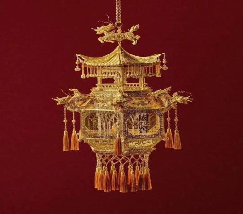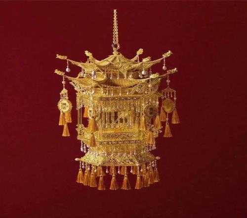 用到了中國(guó)傳統(tǒng)的琉璃燒制、花絲鑲嵌等等技藝制 作,一共1573顆寶石,40顆琉璃寶珠。