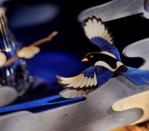 毫無(wú)疑問(wèn),今年這件作品主打的非遺技藝就是“細(xì)木鑲嵌”,打開(kāi)以后就能看到內(nèi)里別有洞天的畫(huà)面